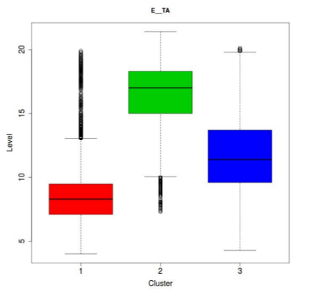 Figure 12: Boxplot par état de la variable E__TA, avec mise en évidence des états par leurs couleurs