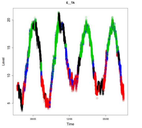 Figure 13: Evolution temporelle de la variable E__TA, avec mise en évidence des états par leurs couleurs