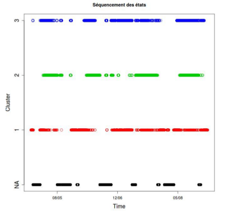 Le graphique présentant le séquencement des états obtenu avec le modèle est également affiché dans la fenêtre graphique de l’interface. Ce séquencement peut être un peu différent de celui obtenu après classification.