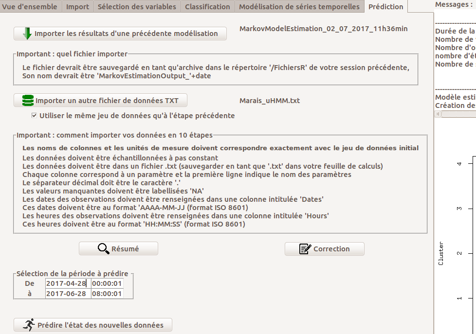 Cet onglet permet d’utiliser un modèle déjà estimé pour prédire les états d’un nouveau jeu de données6.